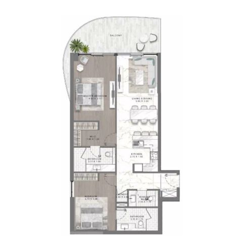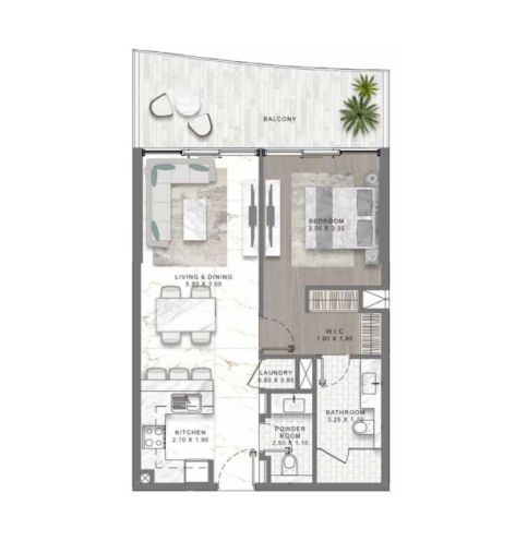 Each residential building includes a ground level, six floors and a rooftop level, and there are nine units per floor. Properties in Lagoon Views are presented by 1-2 bedroom mediterranean-inspired elite apartments with living areas ranging from 674 sq. ft to 1,145 sq. ft. Residences are complemented by generous terraces, from where you can enjoy stunning lagoon views, as well as the surrounding community. You can also buy an entire floor if you are an investor looking to diversify your portfolio and make good returns.
